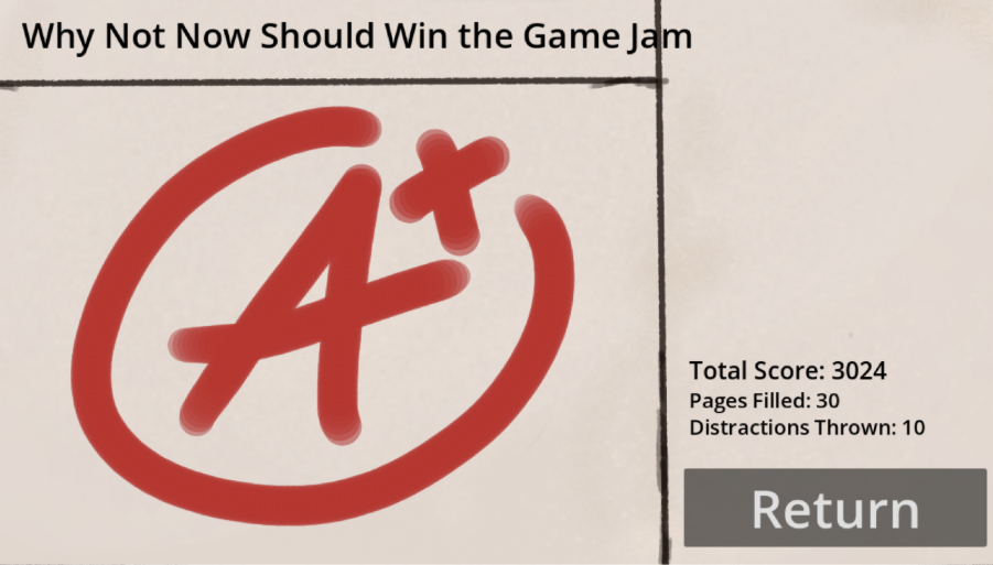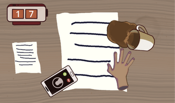 Overworked student meeting his 60 second deadline rushing to write his manuscript.